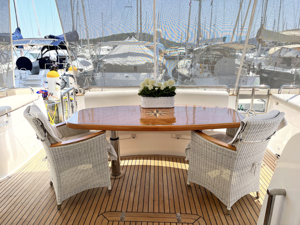 Wenn es gewünscht ist gibt es auch die Möglichkeit zusätzlich 1 Person als Crew zusätzlich zu beschäftigen, welcher die Anlegearbeiten durchführen kann, Kosten 100,– pro Tag, wird im Normalfall von den Chartergästen selbst durchgeführt.